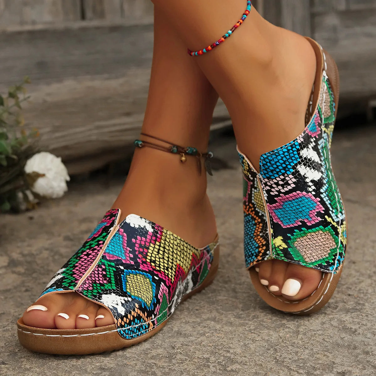 Women's fashion shoes 2025 Summer open-toed women's slippers Comfortable lightweight wedge shoes Classic printed platform slippe